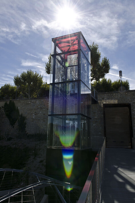 Il peut s’installer dans une gaine maçonnée ou un pylône autoporteur et son entrainement est électrique. Ce qui permet un gain de place et une longévité parfaite.